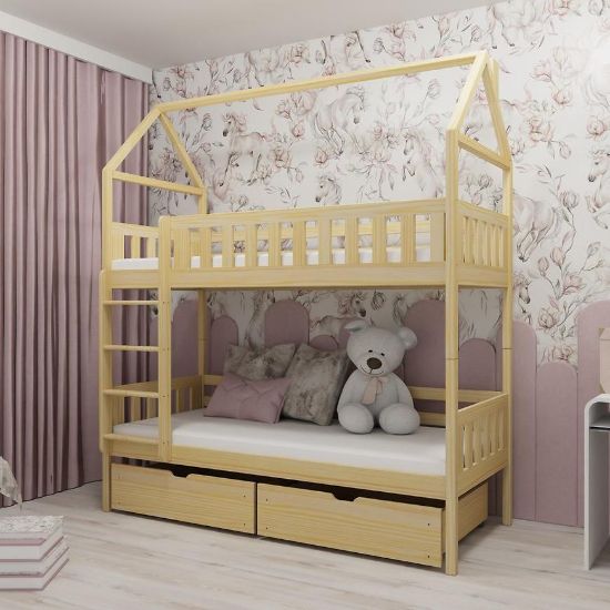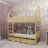 Mimo braku tapicerowania, prostota i naturalność drewnianej konstrukcji tworzy wyjątkowy klimat, który sprzyja wyciszeniu i spokojnemu odpoczynkowi. Łóżko Domek Gaja nie posiada materaca w zestawie, co pozwala na indywidualny dobór tego elementu zgodnie z potrzebami i preferencjami dziecka, zapewniając mu maksymalny komfort snu.