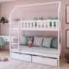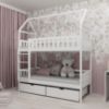 Łóżko Domek Gaja to wyjątkowy mebel, który łączy w sobie funkcjonalność, estetykę i nutę dziecięcej fantazji. Zainspirowane formą domku, łóżko to nie tylko praktyczne miejsce do spania, ale także przestrzeń, która sprzyja zabawie i rozwija kreatywność najmłodszych. Idealnie sprawdzi się w pokoju dziecięcym, wprowadzając do wnętrza ciepło i przytulność, a zarazem zachęcając dziecko do snu w komfortowym i bezpiecznym otoczeniu.
