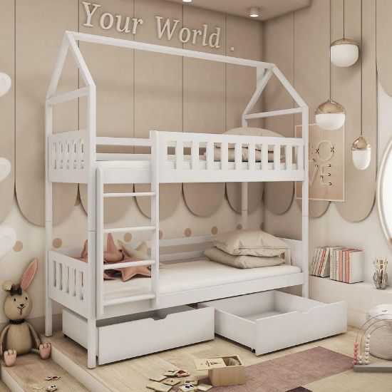 Łóżko Gaja wykonane jest z solidnego drewna, co zapewnia trwałość i wytrzymałość na wiele lat. Jego minimalistyczna, a jednocześnie wyjątkowa konstrukcja w formie domku sprawia, że jest ono niezwykle estetyczne i stanowi centralny punkt każdej dziecięcej sypialni. Matowe wykończenie nadają meblowi elegancji i uniwersalności, dzięki czemu pasuje do różnych stylów wnętrz – od skandynawskiego po nowoczesny.