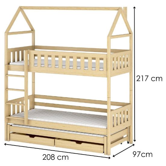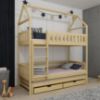 Łóżko Domek Iga wyróżnia się nie tylko swoim urokiem i oryginalnym designem, ale również praktycznymi rozwiązaniami. W zestawie znajdują się dwa schowki na pościel, które zapewniają dodatkową przestrzeń do przechowywania, pomagając utrzymać porządek w pokoju dziecka. Schowki te doskonale sprawdzą się na pościel, koce czy zabawki, a ich umiejscowienie pozwala na łatwy dostęp do nich. Łóżko oferuje również trzy miejsca do spania, co czyni je doskonałym rozwiązaniem dla rodzin z kilkorgiem dzieci lub do wykorzystania podczas odwiedzin gości.