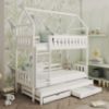 Łóżko Domek Iga wyróżnia się nie tylko swoim urokiem i oryginalnym designem, ale również praktycznymi rozwiązaniami. W zestawie znajdują się dwa schowki na pościel, które zapewniają dodatkową przestrzeń do przechowywania, pomagając utrzymać porządek w pokoju dziecka. Schowki te doskonale sprawdzą się na pościel, koce czy zabawki, a ich umiejscowienie pozwala na łatwy dostęp do nich. Łóżko oferuje również trzy miejsca do spania, co czyni je doskonałym rozwiązaniem dla rodzin z kilkorgiem dzieci lub do wykorzystania podczas odwiedzin gości.