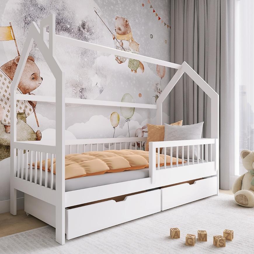 Łóżko Domek Oskar 80x160 white to wyjątkowy mebel, który łączy funkcjonalność, estetykę i zabawny design, tworząc idealne miejsce do snu i zabawy dla dziecka. Zainspirowany kształtem domku, model Oskar doskonale sprawdzi się jako centralny punkt w dziecięcym pokoju, wprowadzając do niego przytulną, domową atmosferę. Jego wysokość zapewnia optymalną przestrzeń do spania, a przy tym nie przytłacza wnętrza, co czyni je idealnym rozwiązaniem zarówno do większych, jak i mniejszych pokoi.