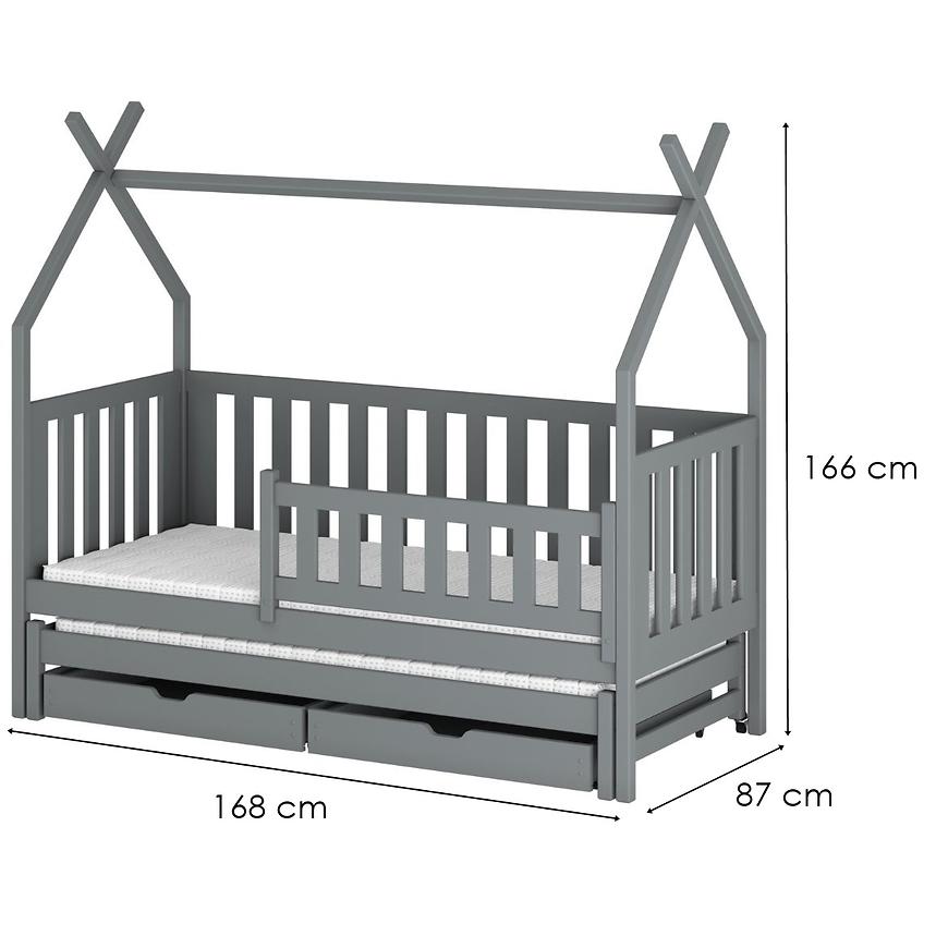 Łóżko Domek Tytus 80x160 grey to idealne rozwiązanie dla dzieci, które uwielbiają kreatywną zabawę i komfortowy sen w przytulnej, domowej atmosferze. Wykonane z solidnego drewna, oferuje nie tylko wyjątkową trwałość, ale także stylowy wygląd dzięki eleganckiemu wybarwieniu. Nowoczesny design w formie domku nadaje łóżku niepowtarzalny charakter, który wpasowuje się w estetykę dziecięcego pokoju, stając się jego główną ozdobą. Matowe wykończenie podkreśla subtelność mebla, czyniąc go harmonijnym dodatkiem do każdego wnętrza.