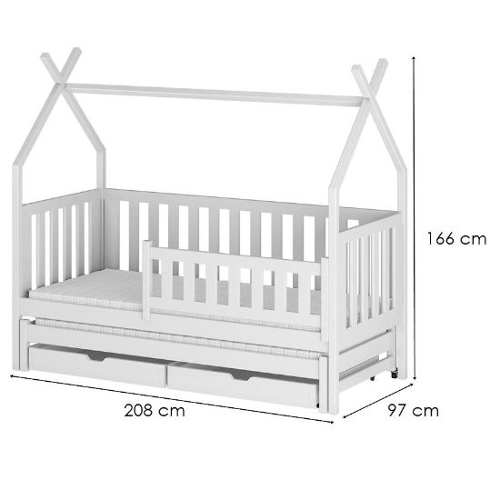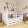 Łóżko Domek Tytus 90x200 white to idealne rozwiązanie dla dzieci, które uwielbiają kreatywną zabawę i komfortowy sen w przytulnej, domowej atmosferze. Wykonane z solidnego drewna, oferuje nie tylko wyjątkową trwałość, ale także stylowy wygląd dzięki eleganckiemu wybarwieniu. Nowoczesny design w formie domku nadaje łóżku niepowtarzalny charakter, który wpasowuje się w estetykę dziecięcego pokoju, stając się jego główną ozdobą. Matowe wykończenie podkreśla subtelność mebla, czyniąc go harmonijnym dodatkiem do każdego wnętrza.