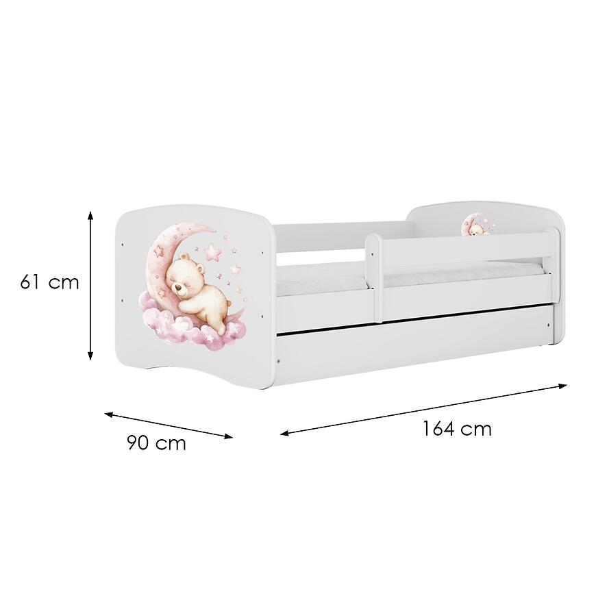 Model Babydreams wyposażony jest w solidny stelaż oraz dopasowany materac, co oznacza, że łóżko jest gotowe do użytkowania od razu po złożeniu. Powierzchnia spania 80x160 cm zapewnia dziecku komfortowy i bezpieczny sen. Stabilna konstrukcja wykonana z płyty wiórowej laminowanej gwarantuje trwałość oraz odporność na codzienne użytkowanie.