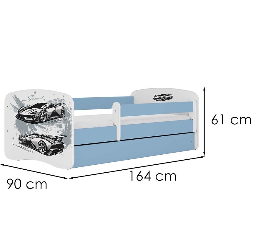 Łóżko dziecięce Babydreams+SZ+M w kolorze niebieskim o wymiarach 80x160 cm to nowoczesna propozycja do pokoju młodzieżowego, łącząca funkcjonalność z estetyką. Wykonane z trwałej płyty wiórowej laminowanej, charakteryzuje się matowym wykończeniem, które podkreśla świeży, młodzieżowy design. Łóżko wyposażone jest w stelaż, co zapewnia odpowiednie podparcie materaca, który trzeba dokupić osobno. Brak tapicerowania i schowka na pościel sprawia, że konstrukcja jest lekka i łatwa w utrzymaniu czystości. Wysokość 61 cm oraz szerokość 90 cm i głębokość 164 cm czynią je wygodnym i przestronnym miejscem do wypoczynku. Produkt wymaga złożenia, co daje możliwość łatwego dopasowania do aranżacji wnętrza. Niebieski kolor dodaje energii i wprowadza przyjemną atmosferę w pokoju młodzieżowym. Idealne łóżko dla młodzieży ceniącej prostotę, komfort i nowoczesny styl.