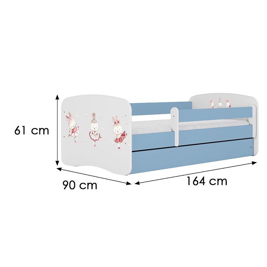 Łóżko dziecięce Babydreams+SZ+M niebieski 80x160 Tańczące Króliczki to funkcjonalne i urocze łóżko stworzone z myślą o komforcie i bezpieczeństwie dzieci. Wykonane z trwałej płyty wiórowej laminowanej, zapewnia stabilność i długotrwałe użytkowanie. Niebieskie, matowe wykończenie nadaje mu świeży, przyjazny charakter, a motyw tańczących króliczków wprowadza radosny i bajkowy klimat. W zestawie znajduje się solidny stelaż, a przestronna powierzchnia spania 80x160 cm gwarantuje wygodny i spokojny sen. Kolekcja BABYDREAMS łączy wysoką jakość, nowoczesny design i dziecięcą radość, tworząc łóżko idealne dla starszych dzieci.