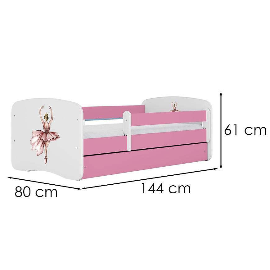 Łóżko dziecięce Babydreams+SZ+M w kolorze różowym z motywem baletnicy to uroczy i praktyczny mebel dedykowany wyłącznie do nowoczesnego pokoju młodzieżowego. Powierzchnia spania 70x140 cm idealnie sprawdzi się dla młodszych dzieci, zapewniając im wygodną i bezpieczną przestrzeń do snu. Wykonane z trwałej płyty wiórowej laminowanej, z matowym wykończeniem, łączy solidność z estetyką. W komplecie znajduje się stelaż, natomiast materac nie jest dołączony, co pozwala na indywidualny wybór. Brak tapicerowania, schowka na pościel oraz oświetlenia podkreśla minimalistyczny, nowoczesny design łóżka. Delikatny motyw baletnicy wprowadza do pokoju subtelny, dziecięcy akcent, który zachwyci najmłodszych. Łóżko wymaga samodzielnego montażu, który jest prosty i intuicyjny. To doskonałe rozwiązanie dla rodziców szukających wygodnego, trwałego i stylowego łóżka do pokoju młodzieżowego.
