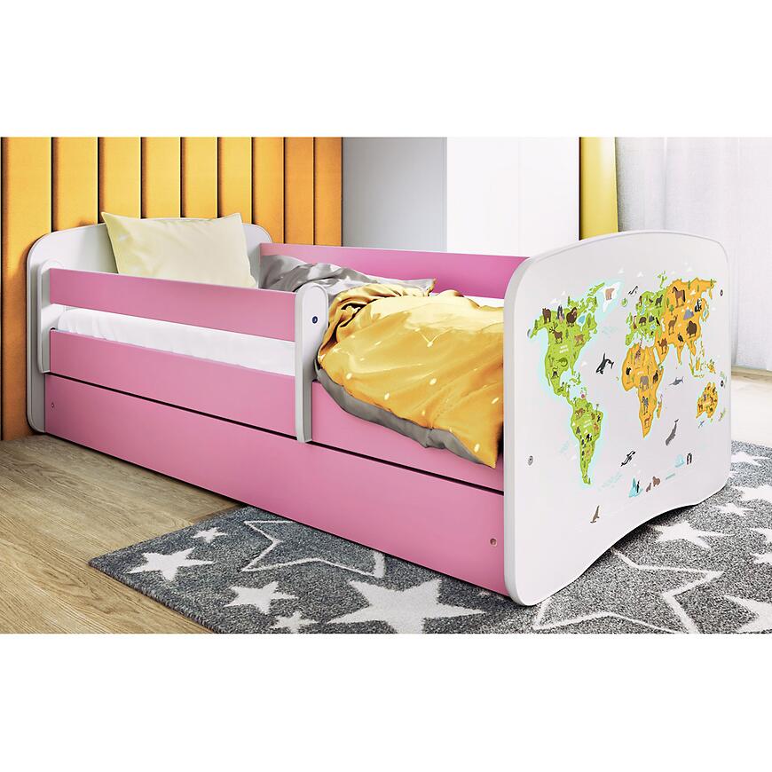 Łóżko dziecięce Babydreams+SZ+M różowy 80x180 mapa
