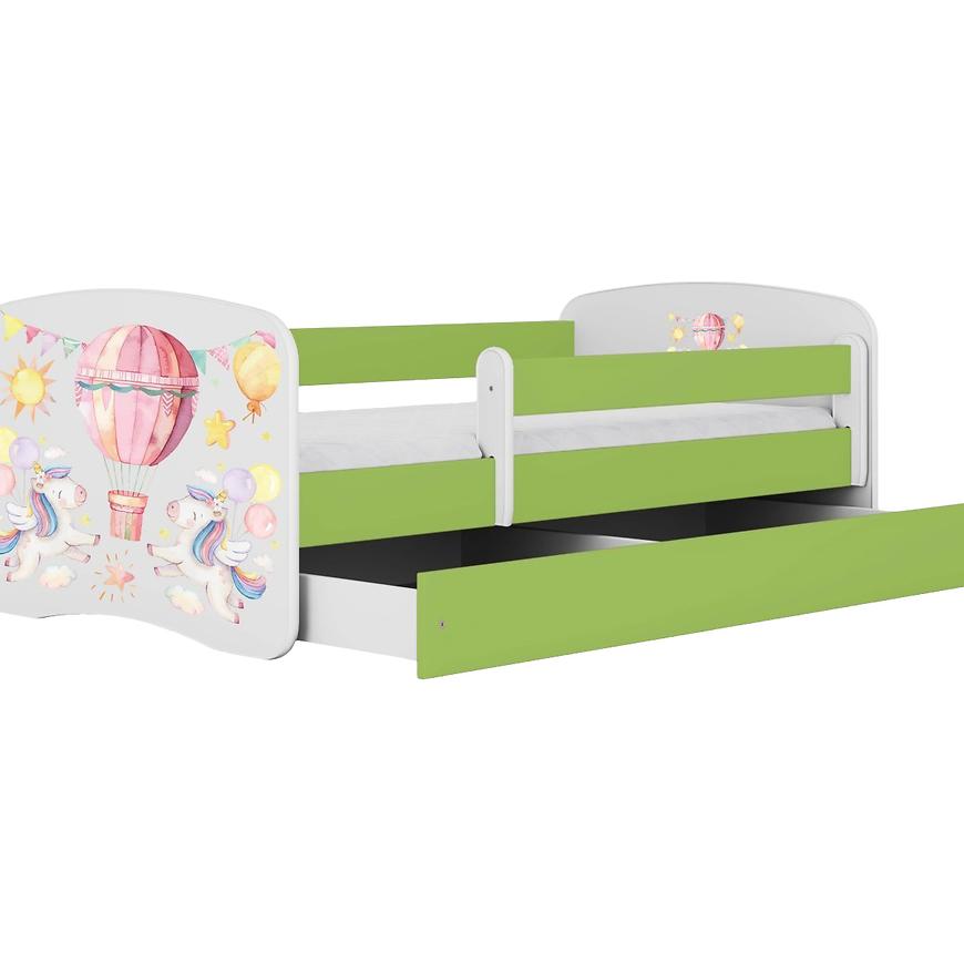Łóżko dziecięce Babydreams+SZ+M w kolorze zielonym to funkcjonalny i estetyczny wybór stworzony z myślą o nowoczesnym pokoju młodzieżowym. Wyróżnia się żywym, zielonym wybarwieniem i uroczym motywem balonika, który wprowadza przyjazną, dziecięcą atmosferę do wnętrza. Wykonane z trwałej płyty wiórowej laminowanej, z matowym wykończeniem, zapewnia odporność na codzienne użytkowanie. Powierzchnia spania 70x140 cm jest idealna dla młodszych dzieci, a w zestawie znajduje się wytrzymały stelaż. Łóżko nie posiada materaca, tapicerowania, schowka ani opcji oświetlenia, co czyni je prostym i lekkim wizualnie meblem. Wymaga samodzielnego montażu, jednak jego konstrukcja jest intuicyjna. Przeznaczone wyłącznie do pokoju młodzieżowego – nie tylko zapewni komfort snu, ale również stanie się barwnym akcentem w dziecięcej przestrzeni, wpisując się w nowoczesny styl aranżacyjny.