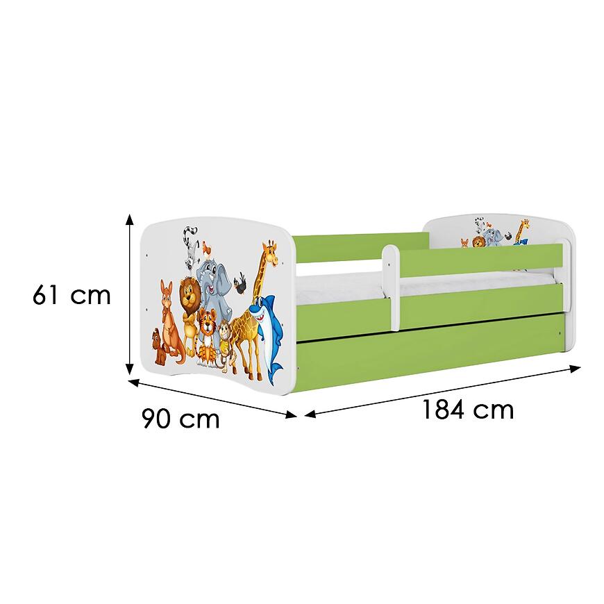 Łóżko dziecięce Babydreams+SZ+M zielony 80x180 zwierzęta to idealne połączenie komfortu, bezpieczeństwa i bajkowego uroku dla dzieci. Wykonane z solidnej płyty wiórowej laminowanej, zapewnia stabilność i trwałość na lata. Zielone, matowe wykończenie wprowadza świeżość i energię, a motyw zwierząt rozwesela codzienne chwile i pobudza wyobraźnię. W zestawie znajduje się solidny stelaż, a przestronna powierzchnia spania 80x180 cm gwarantuje wygodny i spokojny sen. Kolekcja BABYDREAMS łączy nowoczesny design, wysoką jakość i dziecięcą radość, tworząc łóżko, które pokocha każde dziecko.