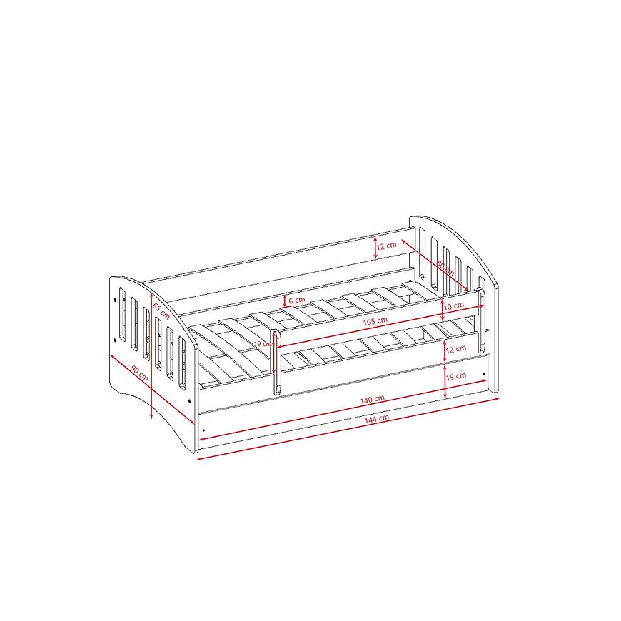 Model wyposażony jest w stelaż, który zapewnia odpowiednie podparcie materaca i wygodę użytkowania. Powierzchnia spania 80x140 cm sprawdzi się w mniejszych pokojach, oferując komfortowe miejsce do snu dla dziecka.
