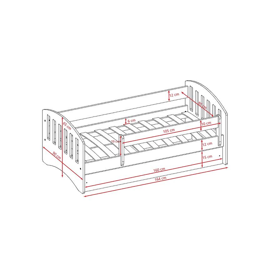Model wyposażony jest w stelaż oraz materac, dzięki czemu zapewnia komfortowy sen bez konieczności dodatkowych zakupów. Powierzchnia spania 80x160 cm oferuje więcej miejsca, co sprawia, że łóżko sprawdzi się również dla starszych dzieci.