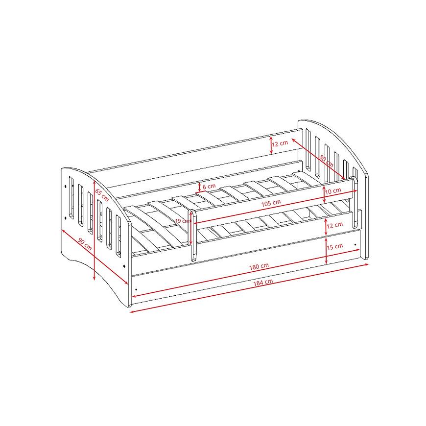 Model wyposażony jest w stelaż oraz materac, dzięki czemu zapewnia komfortowy sen bez konieczności dodatkowego wyposażenia. Powierzchnia spania 80x180 cm daje więcej przestrzeni, co sprawia, że łóżko sprawdzi się również dla starszych dzieci.