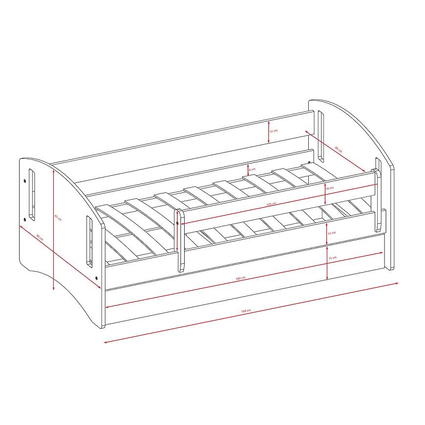 Model wyposażony jest w stelaż, który zapewnia stabilne podparcie materaca oraz komfortowy sen. Powierzchnia spania 80x180 cm daje więcej miejsca, dzięki czemu łóżko sprawdzi się również dla starszych dzieci.