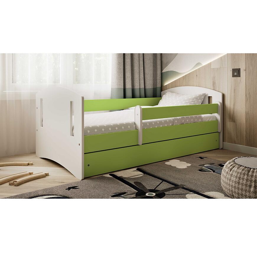 Łóżko dziecięce Classic 2+M w kolorze zielonym to funkcjonalny mebel przeznaczony do codziennego użytkowania w pokoju dziecka. Prosta forma i naturalna kolorystyka sprawiają, że łatwo dopasować je do różnych aranżacji wnętrz, tworząc spokojną i harmonijną przestrzeń.