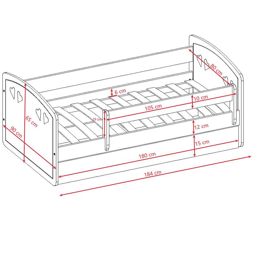 Model wyposażony jest w stelaż oraz materac piankowy, dzięki czemu stanowi kompletne rozwiązanie do spania. Powierzchnia 80x180 cm zapewnia większy komfort i sprawdzi się również dla starszych dzieci.