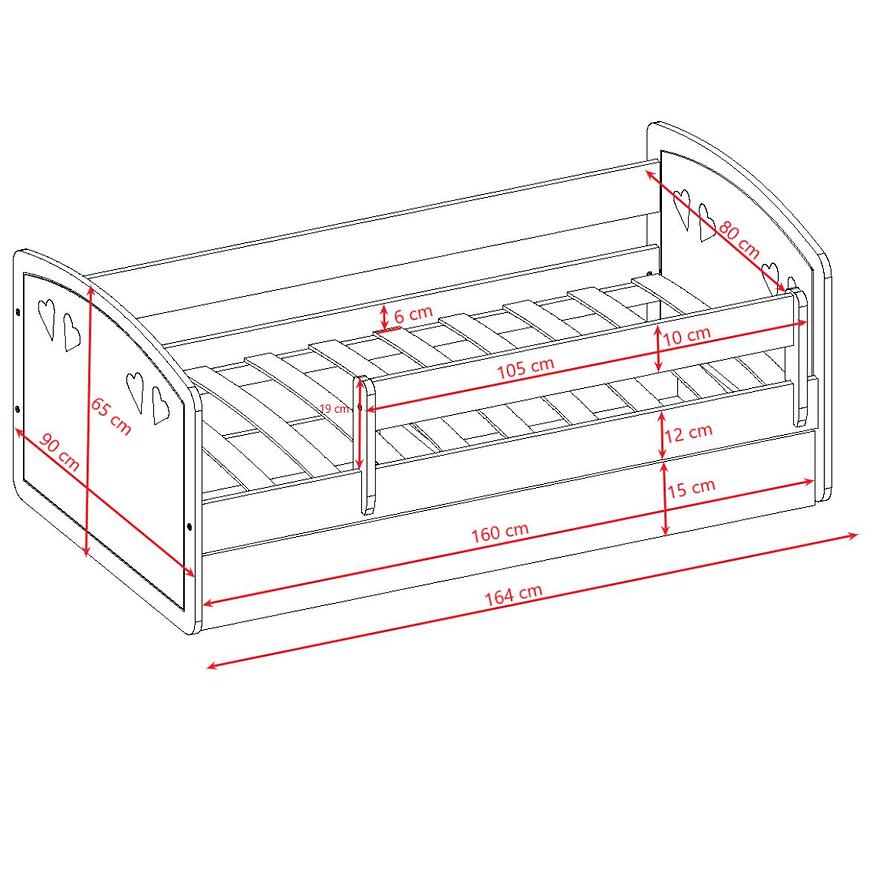 Model wyposażony jest w stelaż, natomiast nie zawiera materaca, co pozwala na jego indywidualny dobór. Powierzchnia 80x160 cm zapewnia komfort i sprawdzi się zarówno dla młodszych, jak i starszych dzieci.