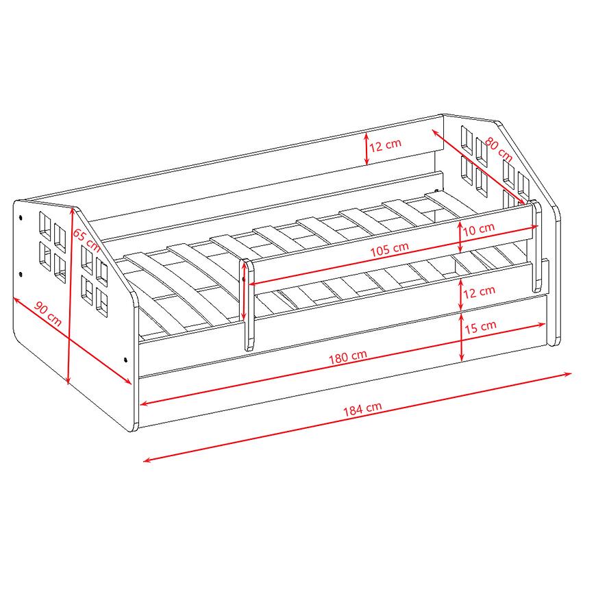 Model wyposażony jest w stelaż, natomiast nie zawiera materaca, co umożliwia jego indywidualny dobór. Powierzchnia spania 80x180 cm zapewnia wysoki komfort i sprawdzi się szczególnie dla starszych dzieci.