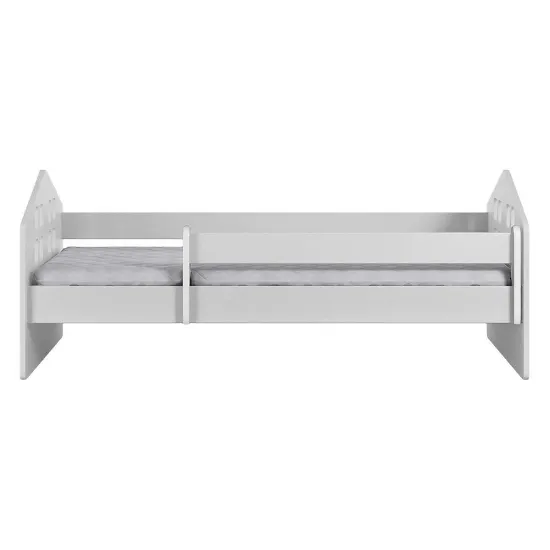 Łóżko wykonane z płyty wiórowej laminowanej cechuje się odpornością na codzienne użytkowanie. Matowe wykończenie w kolorze białym nadaje wnętrzu lekkości i estetycznego wyglądu.