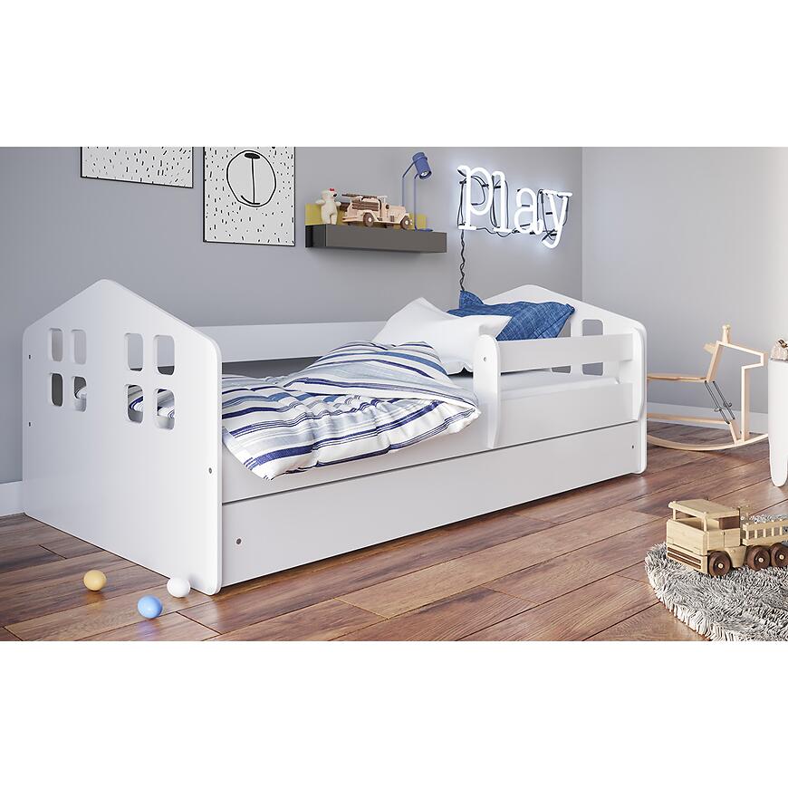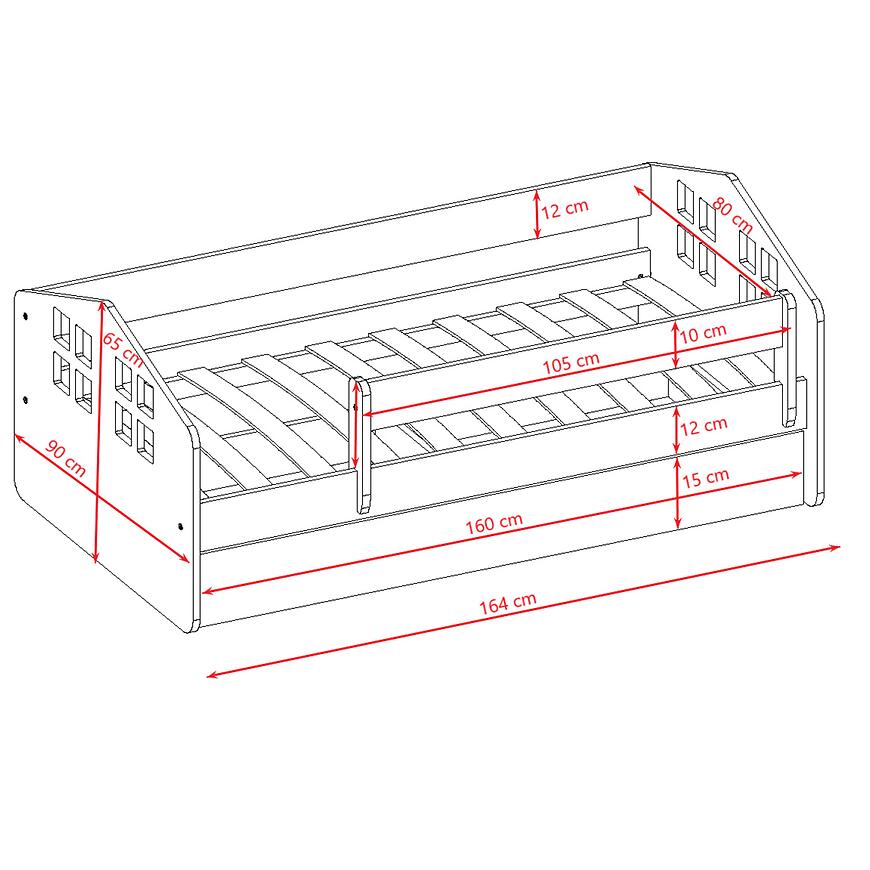 Model wyposażony jest w stelaż oraz materac piankowy, dzięki czemu stanowi gotowy zestaw do spania. Powierzchnia 80x160 cm zapewnia większy komfort i sprawdzi się również dla starszych dzieci.