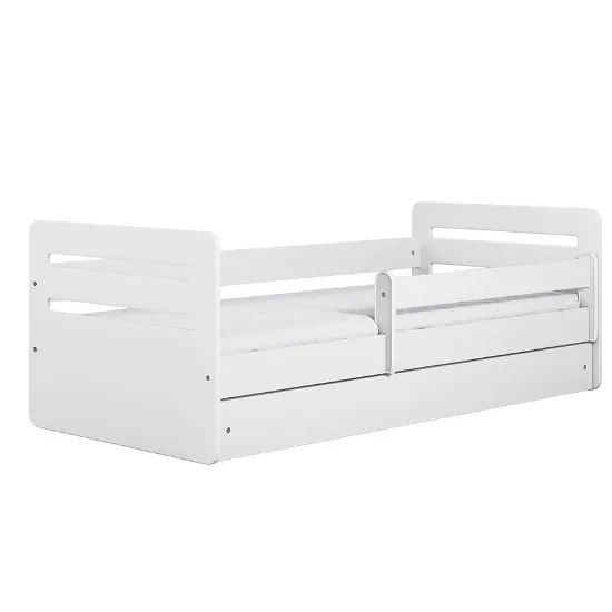 Łóżko dziecięce Tomi białe 80x140 – nowoczesne łóżko z płyty laminowanej. Stelaż w zestawie, bezpieczne i funkcjonalne rozwiązanie.