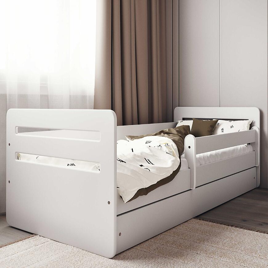 Łóżko dziecięce Tomi+M białe 80x140 – nowoczesne łóżko z płyty laminowanej. Stelaż w zestawie, trwałe i wygodne do codziennego spania.