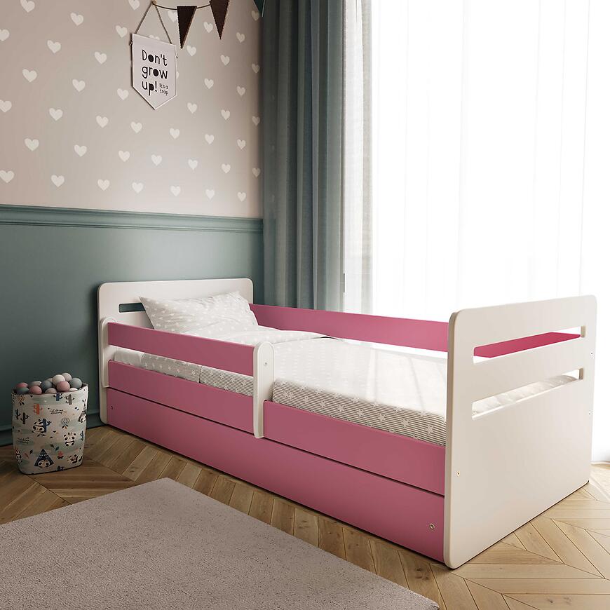 Łóżko dziecięce Tomi+M różowe 80x180 – nowoczesne łóżko z płyty laminowanej. Stelaż w zestawie, trwałe i wygodne do codziennego spania.