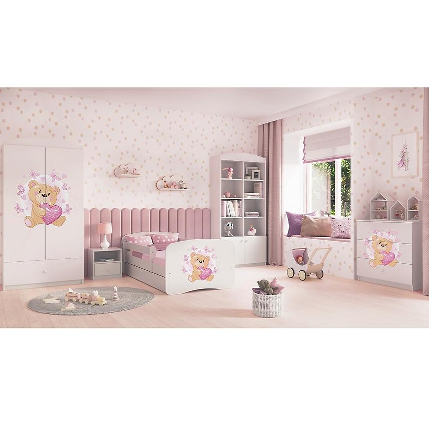 Łóżko dziecięce z materacem i szufladą Babydreams Biały 80x160 Miś Motyl