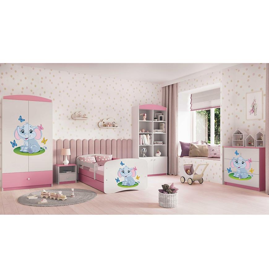 Łóżko dziecięce z materacem i szufladą Babydreams Różowe 70x140 Słonik