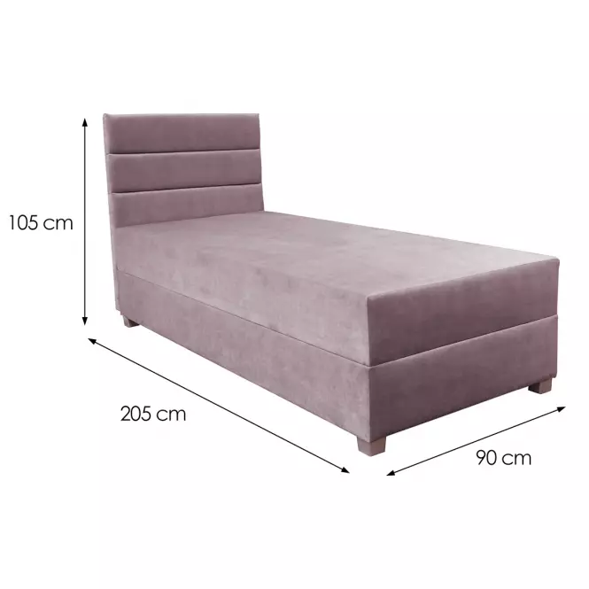 Wyposażone w automatyczny podnośnik, łóżko Elen 90 Zetta umożliwia łatwy dostęp do przestronnego schowka na pościel, co pomaga w utrzymaniu porządku w sypialni i zapewnia dodatkową przestrzeń na przechowywanie pościeli lub innych tekstyliów. Srebrne nóżki podkreślają nowoczesny styl mebla, dodając mu lekkości i elegancji, a ich neutralna kolorystyka harmonizuje z różową tapicerką, nadając łóżku świeży, modny wygląd.