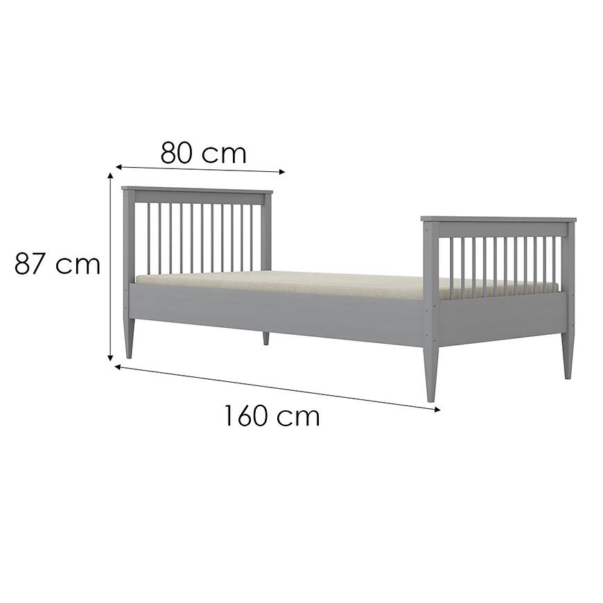 Powierzchnia spania 160x80 cm oraz solidny stelaż w komplecie zapewniają wygodny i stabilny wypoczynek. Materac 160x80 cm można dobrać indywidualnie, a brak tapicerowania ułatwia utrzymanie łóżka w czystości.