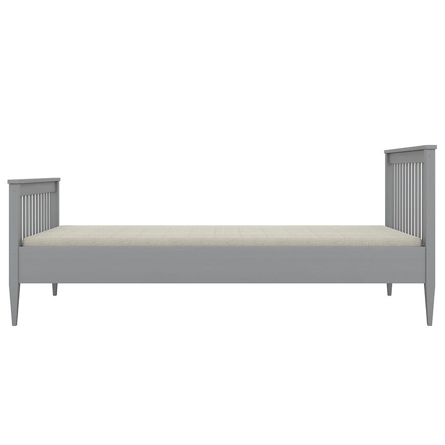 Łóżko Emilia 80x200 szary łączy minimalistyczny design z trwałą, drewnianą konstrukcją. Model z kolekcji EMILIA wyróżnia się prostą formą, matowym wykończeniem i drewnianym tyłem zagłowia, oferując elegancki i stonowany wygląd.
