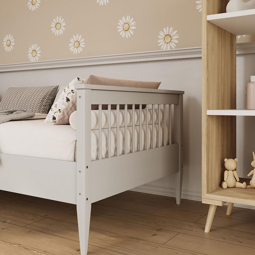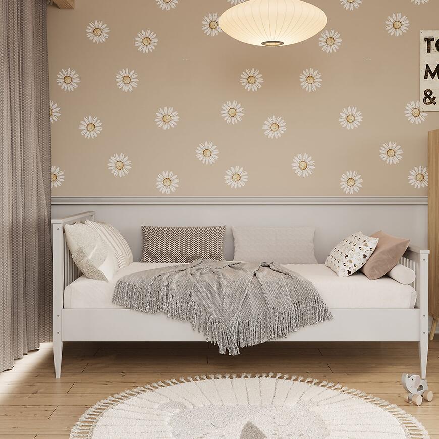 Łóżko Emilia 90x180 wykonane jest z wysokiej jakości drewna w białym wybarwieniu. Matowe wykończenie podkreśla nowoczesny charakter mebla i nadaje mu lekką, elegancką formę. Brak oświetlenia i schowka na pościel zachowuje prostą, minimalistyczną linię konstrukcji, a solidne drewno gwarantuje stabilność i długowieczność.