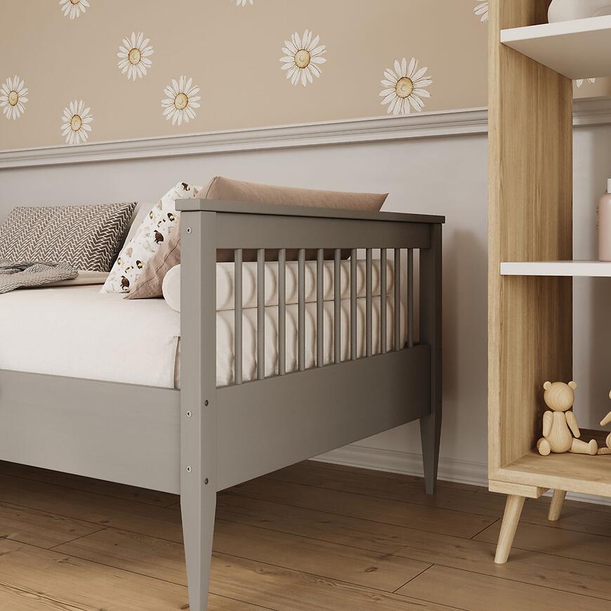 Łóżko Emilia 90x200 wykonane z drewna zapewnia stabilność i odporność na codzienne użytkowanie. Szary kolor w matowym wykończeniu nadaje łóżku subtelności, a prosty kształt podkreśla nowoczesny styl. Brak oświetlenia i schowka na pościel zachowuje minimalistyczną linię konstrukcji.