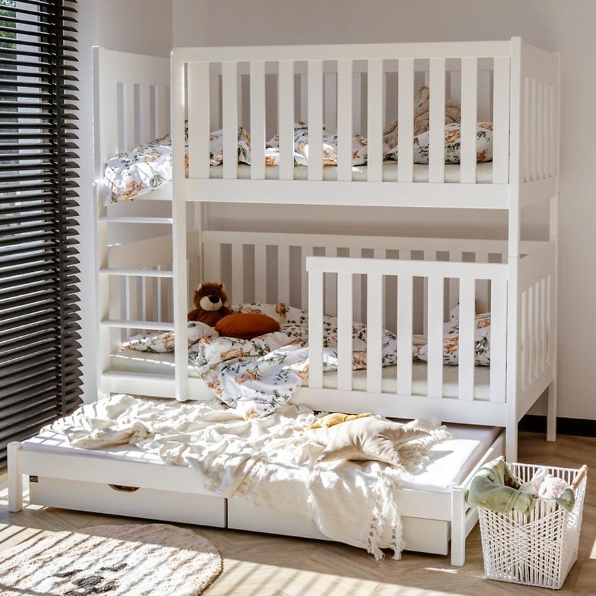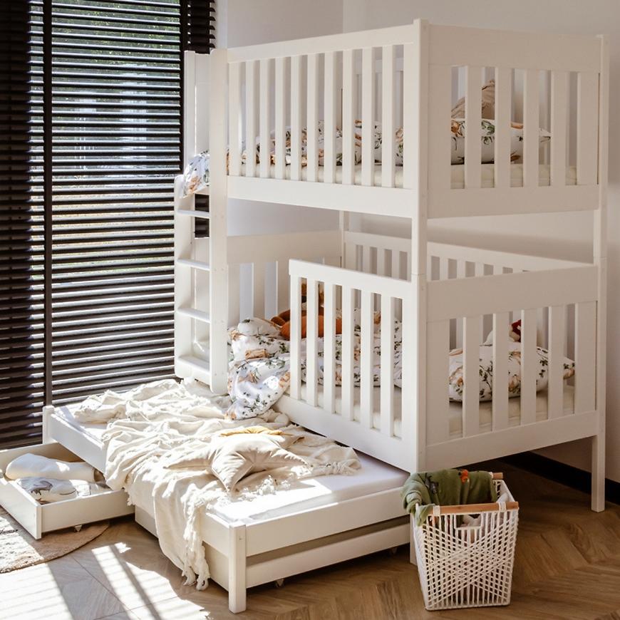 Jednym z największych atutów łóżka Emilka jest praktyczny schowek na pościel. Łóżko wyposażone jest w dwa pojemne schowki, które zapewniają wygodne miejsce na przechowywanie kołder, poduszek lub innych tekstyliów, co pomaga utrzymać porządek w sypialni i maksymalnie wykorzystać dostępną przestrzeń. Dzięki temu łóżko Emilka to nie tylko komfortowy mebel do spania, ale także praktyczny element wyposażenia wnętrza.