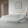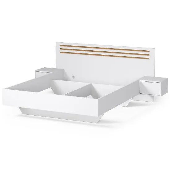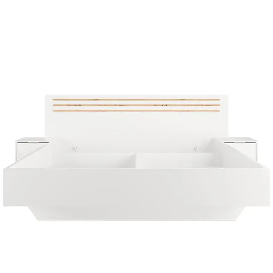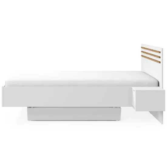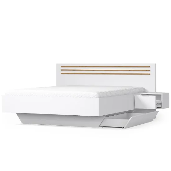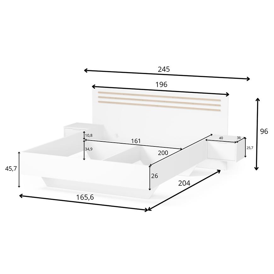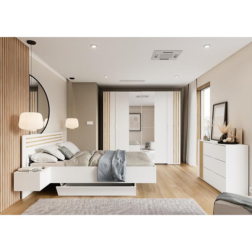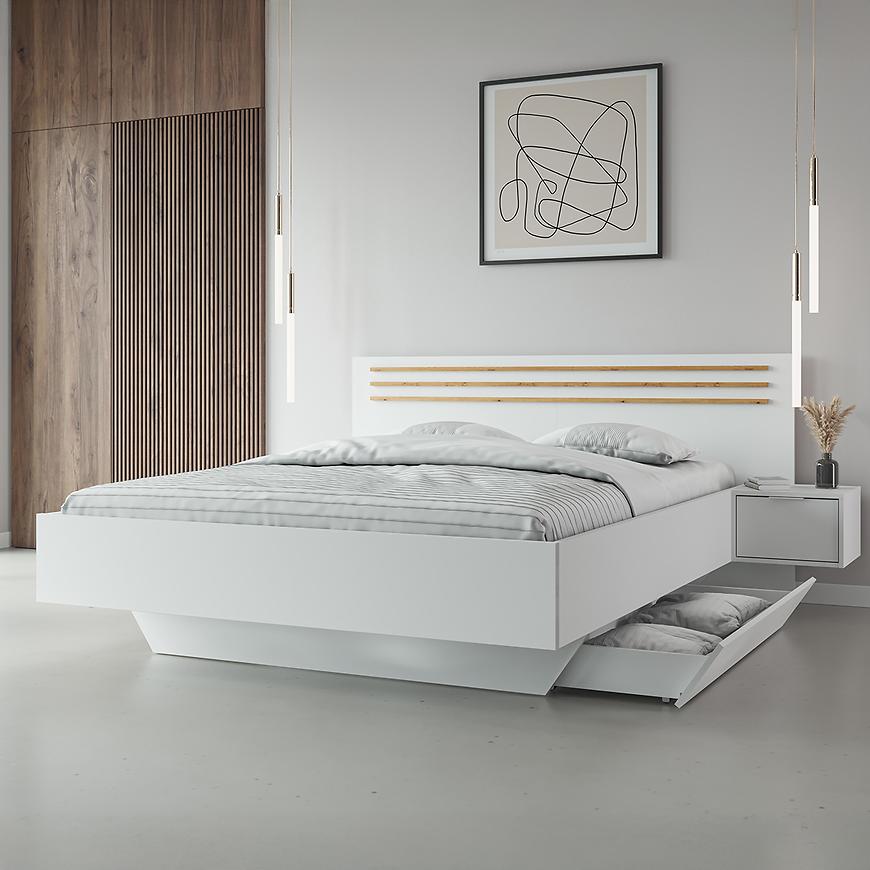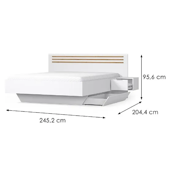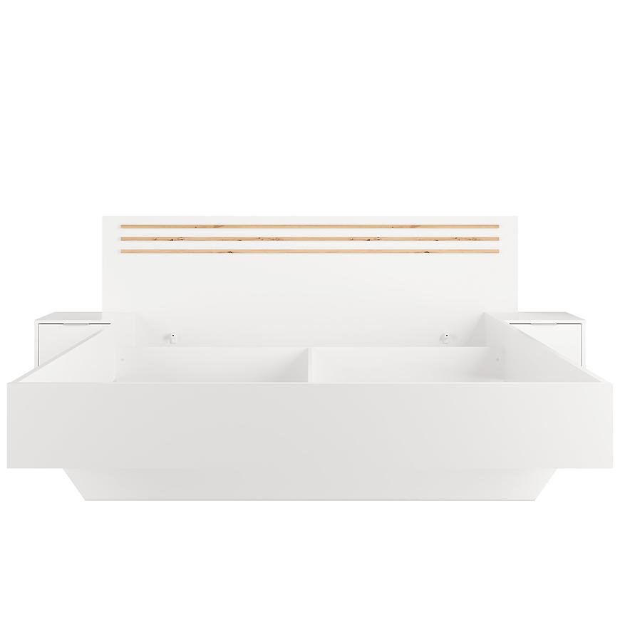 Przeznaczone na materac o rozmiarze 160x200 cm, łóżko oferuje dużą i wygodną powierzchnię spania – idealną dla par. Praktyczne szafki boczne zintegrowane z konstrukcją łóżka zapewniają dodatkowe miejsce do przechowywania i wygodę na co dzień.