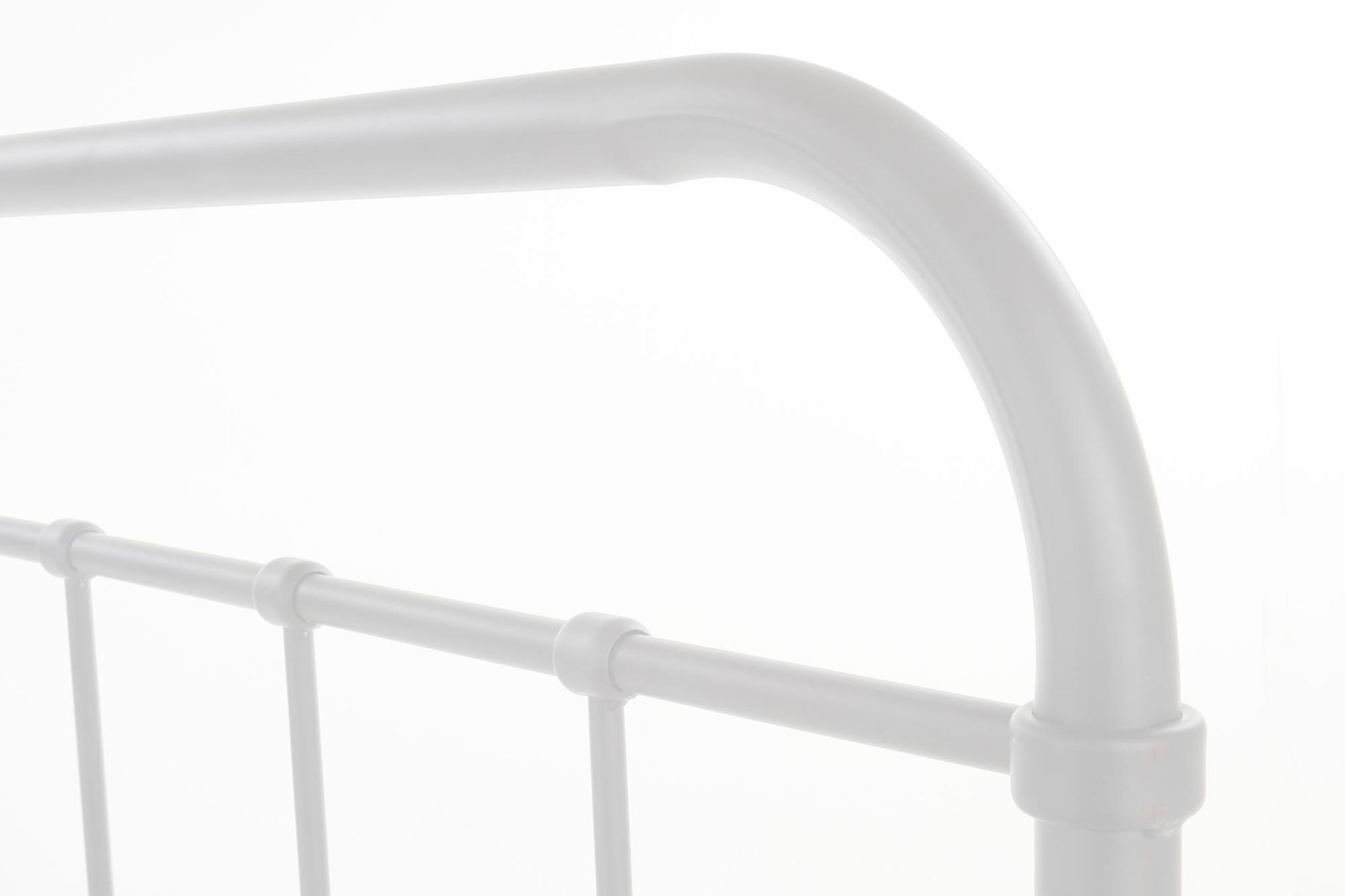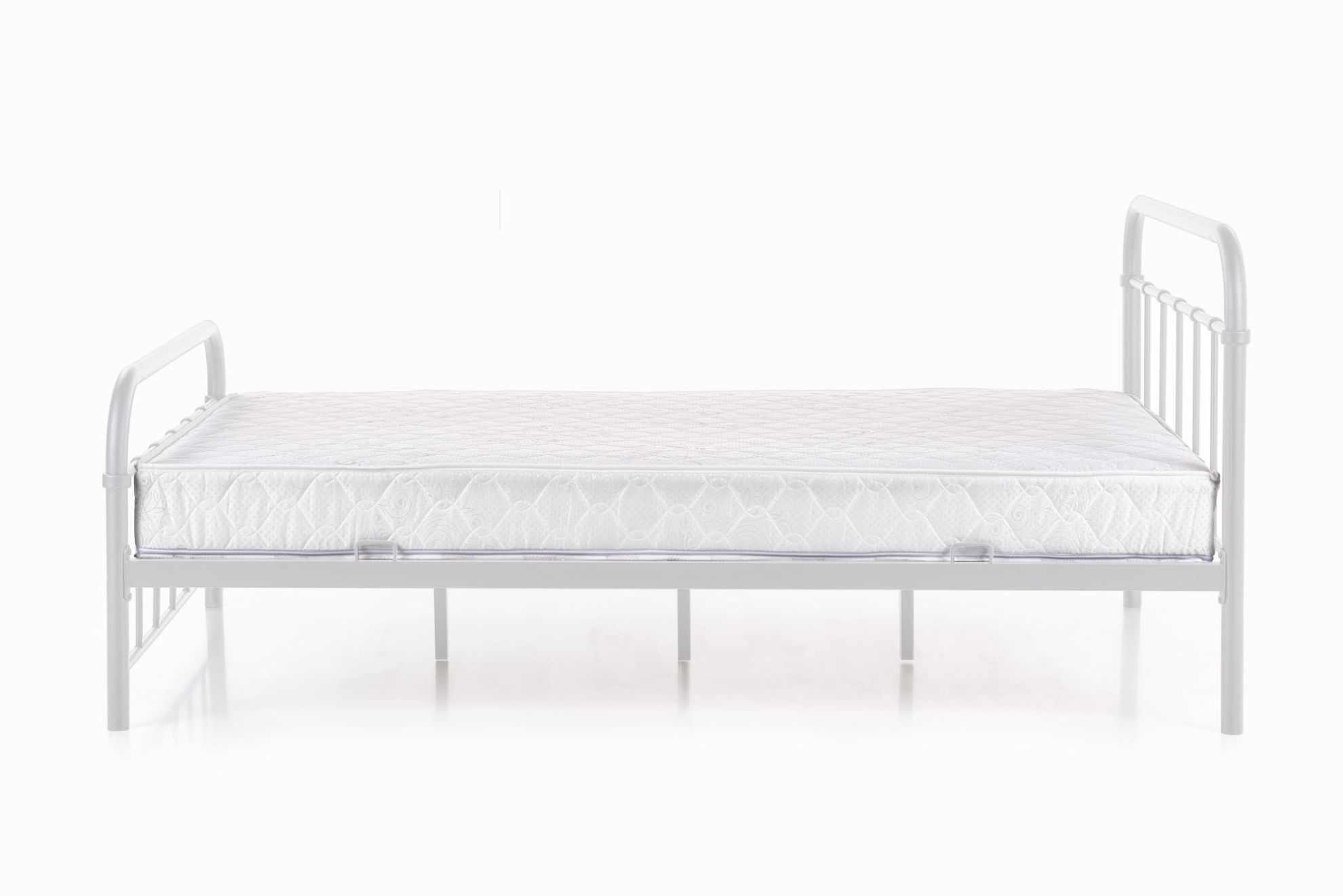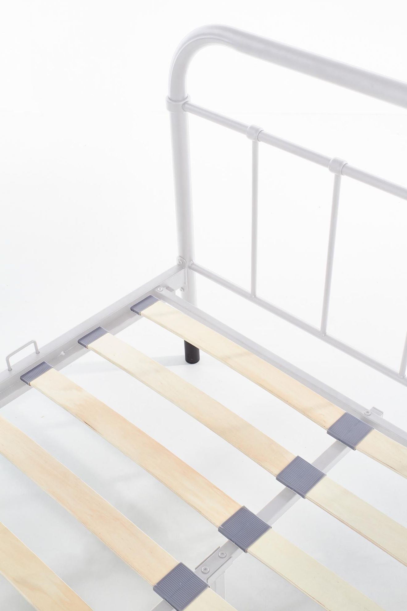 Konstrukcja łóżka wykonana jest z malowanej proszkowo stali, co gwarantuje nie tylko trwałość, ale także solidność i stabilność. Biały kolor konstrukcji nadaje meblowi lekkości i uniwersalności, dzięki czemu łatwo dopasuje się do różnych stylów aranżacyjnych.
