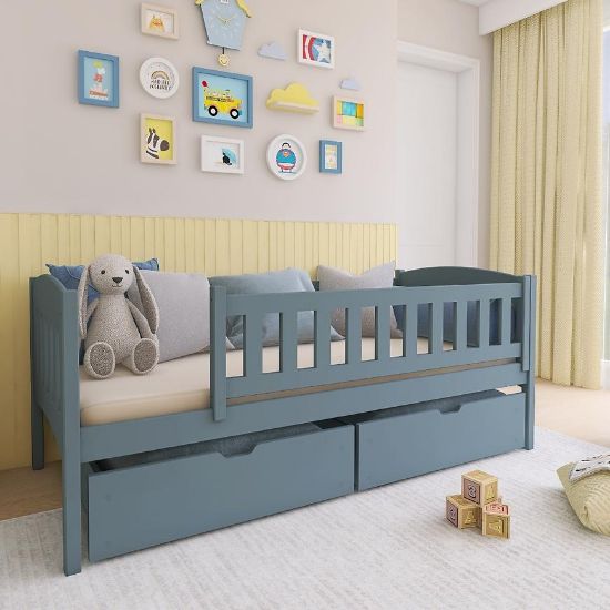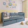 Łóżko Gucio wyposażone jest w drewniany stelaż, który znajduje się w zestawie, co sprawia, że użytkownik od razu otrzymuje kompletny, gotowy do użytku mebel. Stelaż zapewnia odpowiednie podparcie dla materaca, co wpływa na komfort snu oraz optymalne rozłożenie ciężaru ciała. Dzięki solidnej drewnianej konstrukcji łóżko gwarantuje stabilność, wytrzymałość i długoletnie użytkowanie.