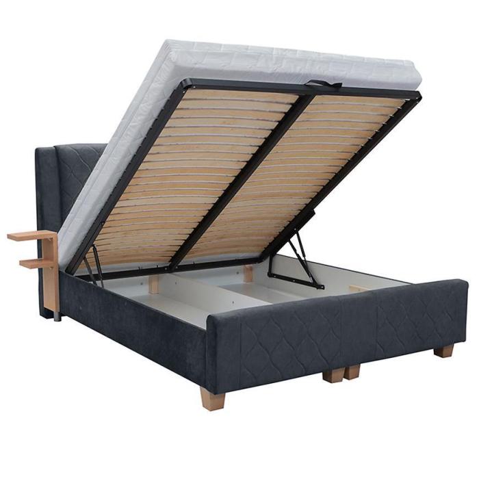 Łóżko India to nowoczesny mebel dla osób ceniących sobie wygodę. Wyposażone zostało w pojemnik na pościel, które otwierane są z przodu za pomocą podnośnika gazowego. W komplecie dołączony jest stelaż oraz materac typu bonell.