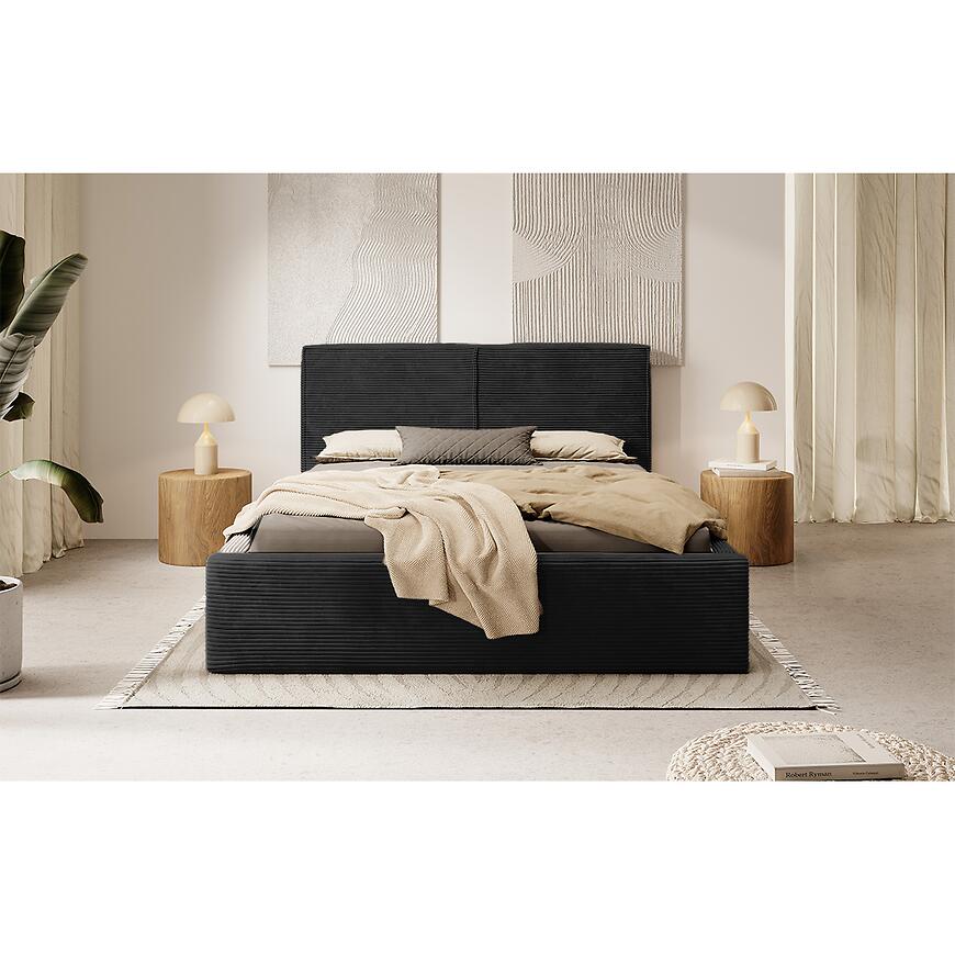 Miękka tapicerka zwiększa komfort codziennego wypoczynku, a czarny kolor podkreśla nowoczesny charakter wnętrza. Łóżko z pojemnikiem na pościel to praktyczne rozwiązanie do sypialni, w której liczy się ergonomia i porządek. Model Inez łączy wygodę spania z estetycznym designem.