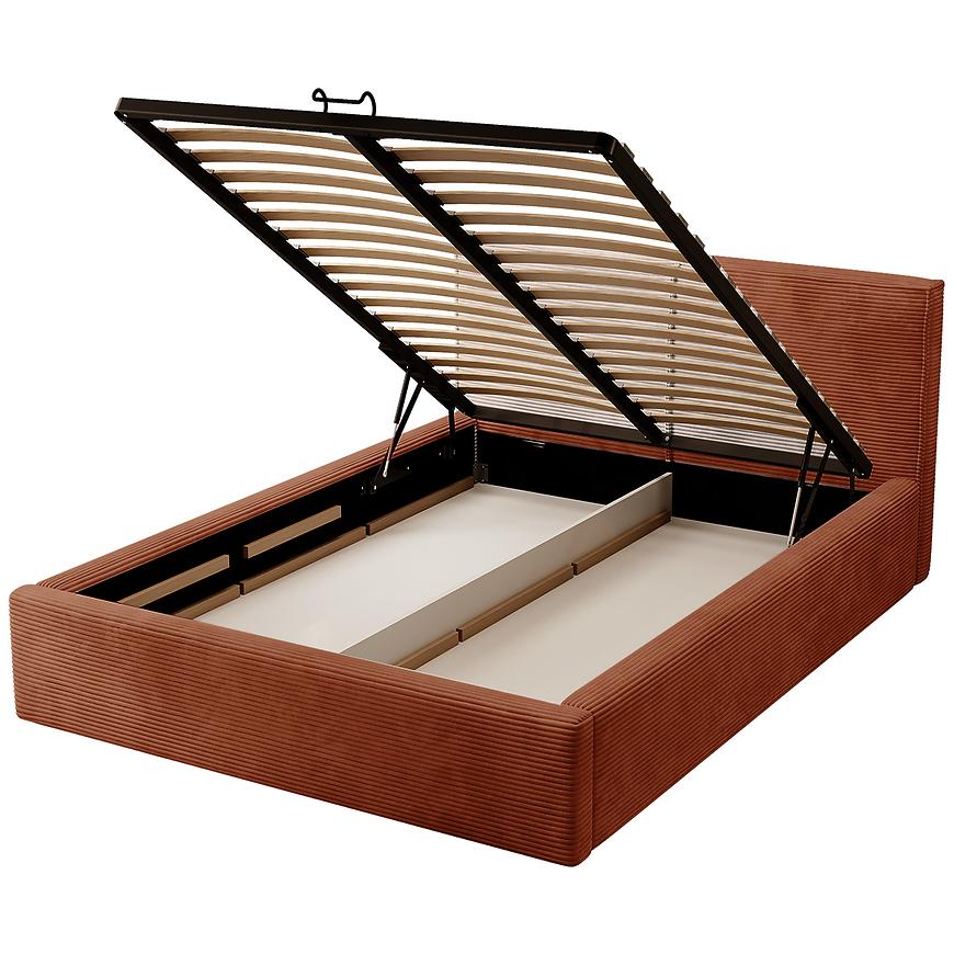 Konstrukcja łóżka opiera się na solidnym stelażu o wymiarach 139x198 cm, który zapewnia optymalne podparcie dla materaca. Łóżko wykonane z laminowanej płyty wiórowej i drewna charakteryzuje się wytrzymałością, jednocześnie prezentując się wyjątkowo estetycznie. Wysokość do siedziska wynosi 35 cm, co pozwala na wygodne wstawanie i kładzenie się. Przemyślane rozwiązania obejmują również przestronny schowek na pościel. Dwa pojemne schowki o wymiarach 69x198 cm z łatwością pomieszczą nie tylko pościel, ale także inne elementy tekstylne, co ułatwia utrzymanie porządku w sypialni. Dzięki gazowemu podnośnikowi dostęp do schowków jest prosty i wygodny, a ich zamknięcie nie wymaga dużego wysiłku.