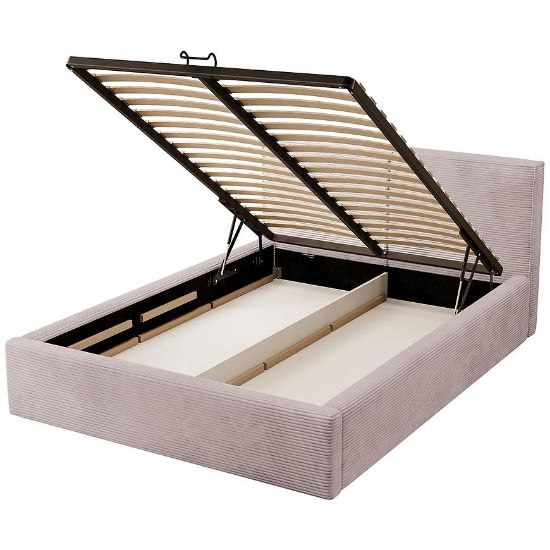 Konstrukcja łóżka opiera się na solidnym stelażu o wymiarach 139x198 cm, który zapewnia optymalne podparcie dla materaca. Łóżko wykonane z laminowanej płyty wiórowej i drewna charakteryzuje się wytrzymałością, jednocześnie prezentując się wyjątkowo estetycznie. Wysokość do siedziska wynosi 35 cm, co pozwala na wygodne wstawanie i kładzenie się. Przemyślane rozwiązania obejmują również przestronny schowek na pościel. Dwa pojemne schowki o wymiarach 69x198 cm z łatwością pomieszczą nie tylko pościel, ale także inne elementy tekstylne, co ułatwia utrzymanie porządku w sypialni. Dzięki gazowemu podnośnikowi dostęp do schowków jest prosty i wygodny, a ich zamknięcie nie wymaga dużego wysiłku.