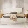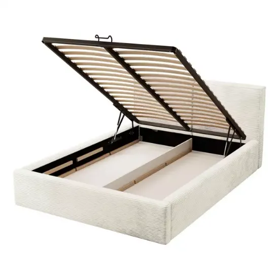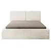 Konstrukcja łóżka opiera się na solidnym stelażu o wymiarach 139x198 cm, który zapewnia optymalne podparcie dla materaca. Łóżko wykonane z laminowanej płyty wiórowej i drewna charakteryzuje się wytrzymałością, jednocześnie prezentując się wyjątkowo estetycznie. Wysokość do siedziska wynosi 35 cm, co pozwala na wygodne wstawanie i kładzenie się. Przemyślane rozwiązania obejmują również przestronny schowek na pościel. Dwa pojemne schowki o wymiarach 69x198 cm z łatwością pomieszczą nie tylko pościel, ale także inne elementy tekstylne, co ułatwia utrzymanie porządku w sypialni. Dzięki gazowemu podnośnikowi dostęp do schowków jest prosty i wygodny, a ich zamknięcie nie wymaga dużego wysiłku.