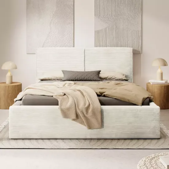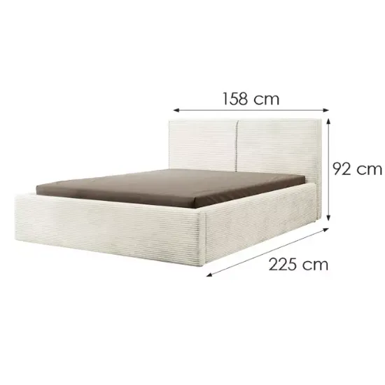 Łóżko Inez 140x200 to elegancka propozycja dla osób ceniących nowoczesny design połączony z funkcjonalnością. Z powierzchnią spania o wymiarach 140x200 cm stanowi idealne miejsce wypoczynku dla dwóch osób, a wysokiej jakości wykonanie gwarantuje trwałość i wygodę. Dzięki stylowemu tapicerowaniu tkaniną i ozdobnej lamówce na wezgłowiu łóżko wprowadza do wnętrza nutę elegancji. Subtelne wezgłowie o szerokości 158 cm i wysokości 92 cm zapewnia komfort oparcia, idealne do wieczornego relaksu czy porannej lektury. Tył zagłówka wykończony jest czarną podbitką, co dodaje mu elegancji i podkreśla nowoczesny styl mebla.
