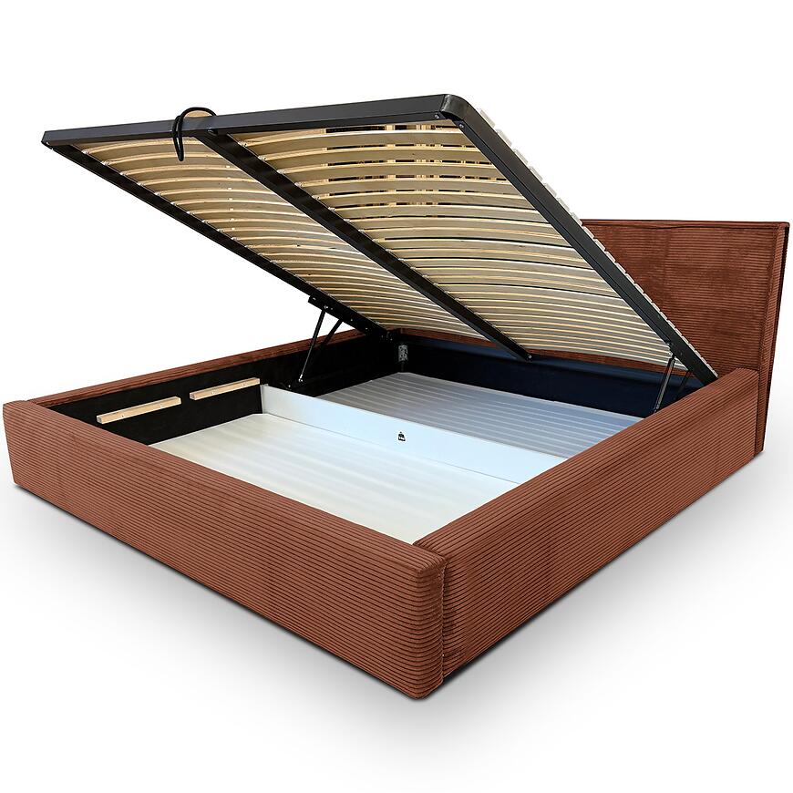 Miękka tapicerka zwiększa wygodę użytkowania, a rudy kolor nadaje wnętrzu ciepła i charakteru. Łóżko z pojemnikiem na pościel to funkcjonalne rozwiązanie do sypialni, gdzie liczy się organizacja przestrzeni. Model Inez 160x200 łączy nowoczesny design z praktycznymi rozwiązaniami.