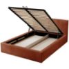 Łóżko Inez posiada funkcjonalny schowek na pościel, co pozwala na wygodne przechowywanie zapasowych kołder, poduszek czy koców. Dwa przestronne pojemniki o wymiarach 79x198 cm są dostępne dzięki gazowemu podnośnikowi, który umożliwia łatwe podnoszenie stelaża. Rozwiązanie to sprawia, że łóżko jest nie tylko wygodne, ale także praktyczne, pomagając w utrzymaniu porządku w sypialni.
