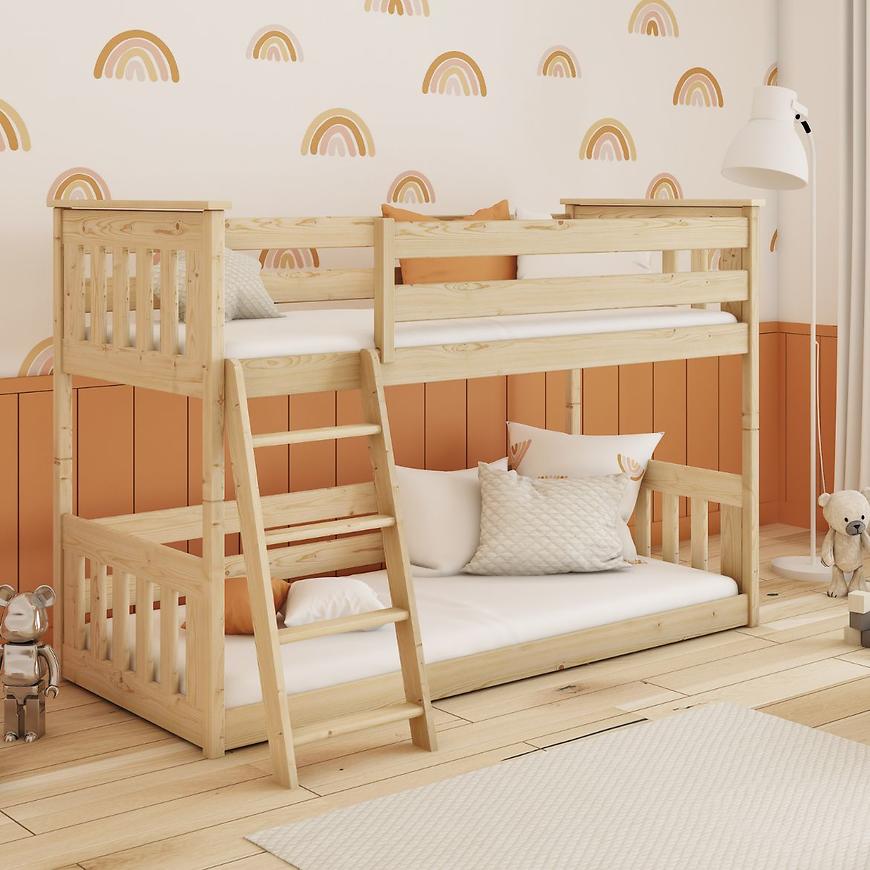 Sosnowe wybarwienie łóżka wprowadza do wnętrza poczucie świeżości i lekkości, tworząc jasną i przytulną atmosferę. Kolor ten sprawia, że łóżko doskonale komponuje się z różnymi dodatkami i kolorystyką w pomieszczeniu, umożliwiając łatwe dopasowanie do indywidualnych potrzeb i gustów.