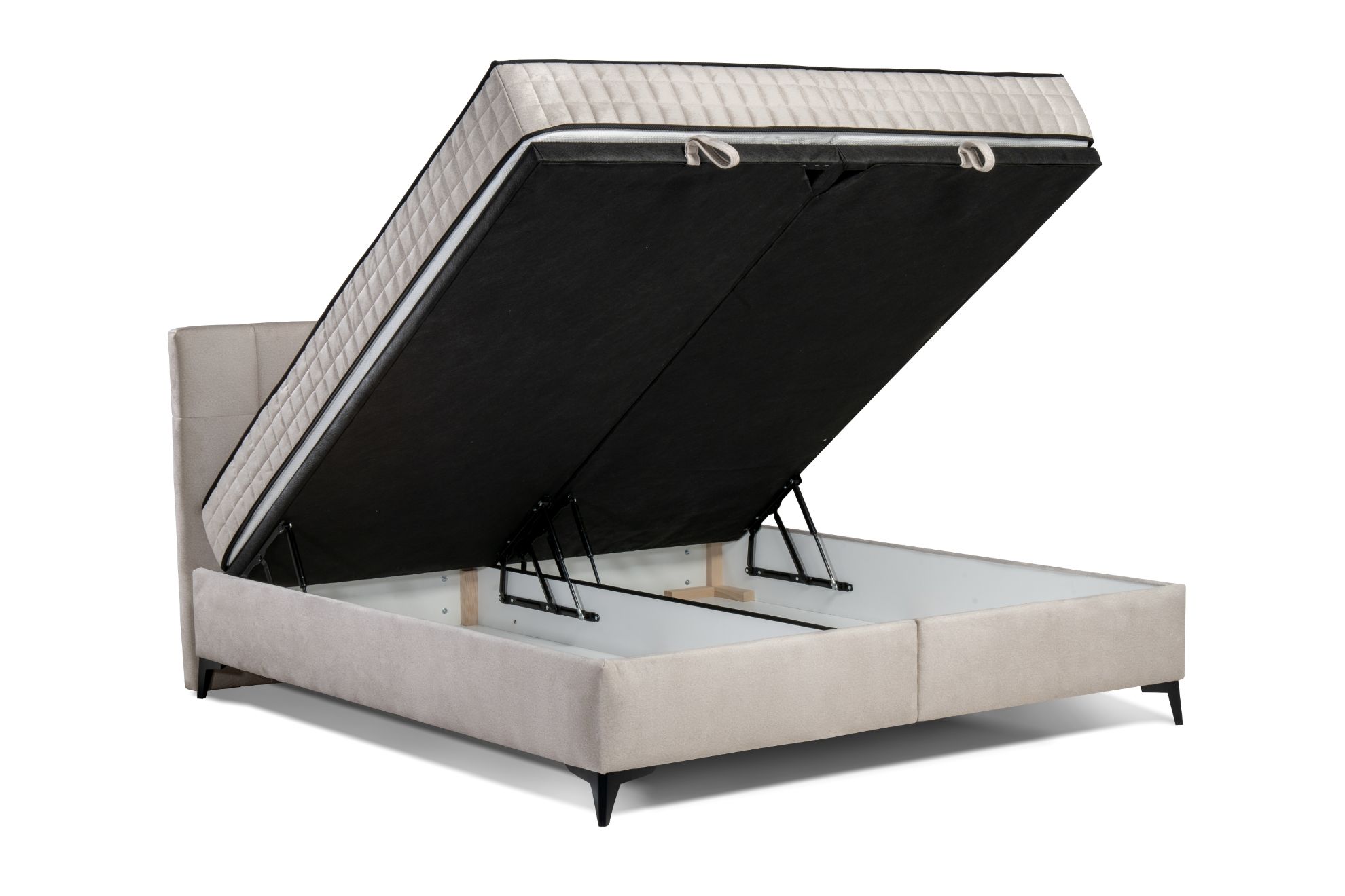Łóżko Carino 180 to nie tylko komfort snu, ale także praktyczność użytkowania. Model został wyposażony w pojemnik na pościel, który jest łatwo dostępny dzięki otwieraniu od czoła. System z siłownikiem gazowym ułatwia podnoszenie siedziska, co sprawia, że codzienne użytkowanie łóżka jest wyjątkowo proste i wygodne. To doskonały sposób na utrzymanie porządku w sypialni, bez konieczności przechowywania dodatkowej pościeli w szafach.
