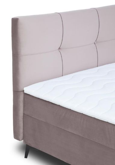 Powierzchnia spania o wymiarach 120x200 cm, wykonana z ekskluzywnej tkaniny Velutto, zachwyca nie tylko solidnością, ale także delikatnym połyskiem weluru. Tkanina jest niezwykle odporna na mechacenie i posiada wysoką odporność na ścieranie, co gwarantuje długotrwałą satysfakcję z użytkowania.